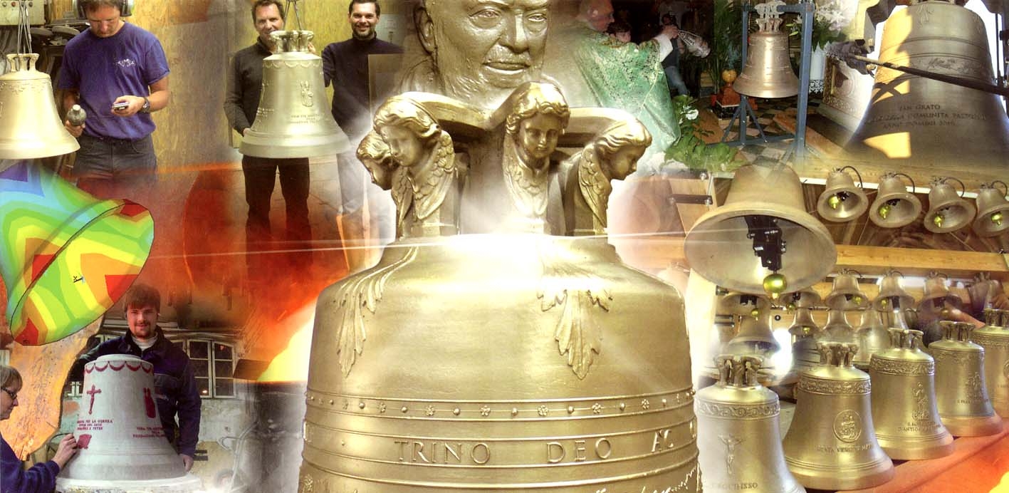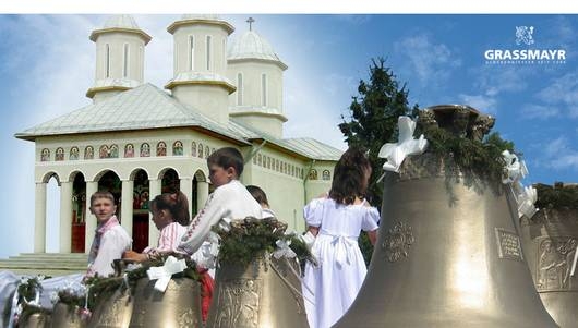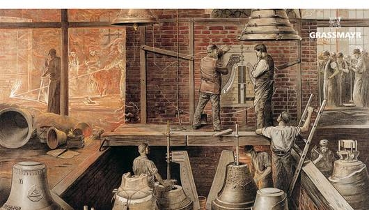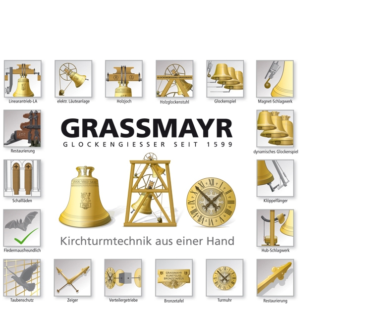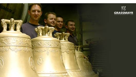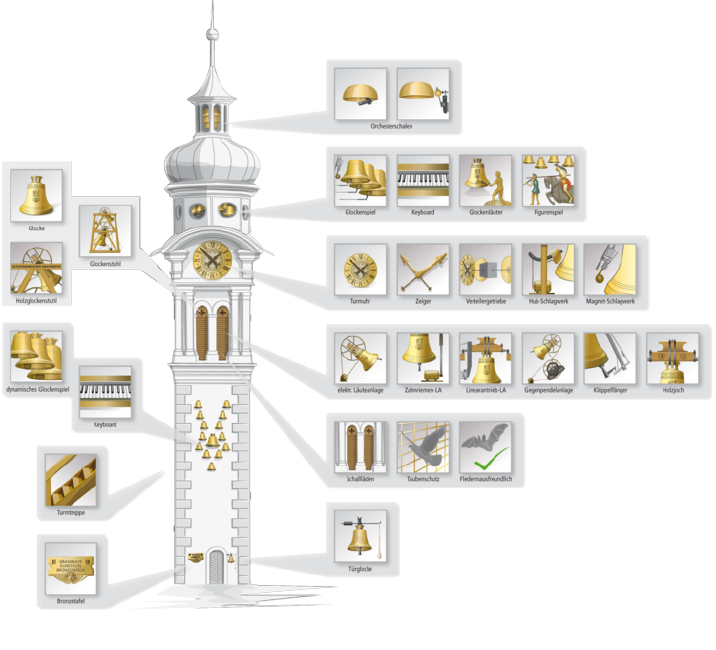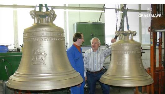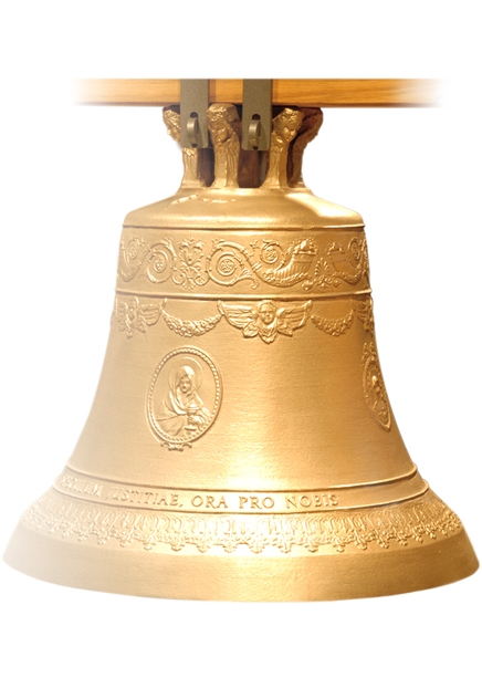 教会の外壁や塔屋部分に取り付けます。鐘は調律され、装飾帯や文字、マークを自由に鋳込むことができます。